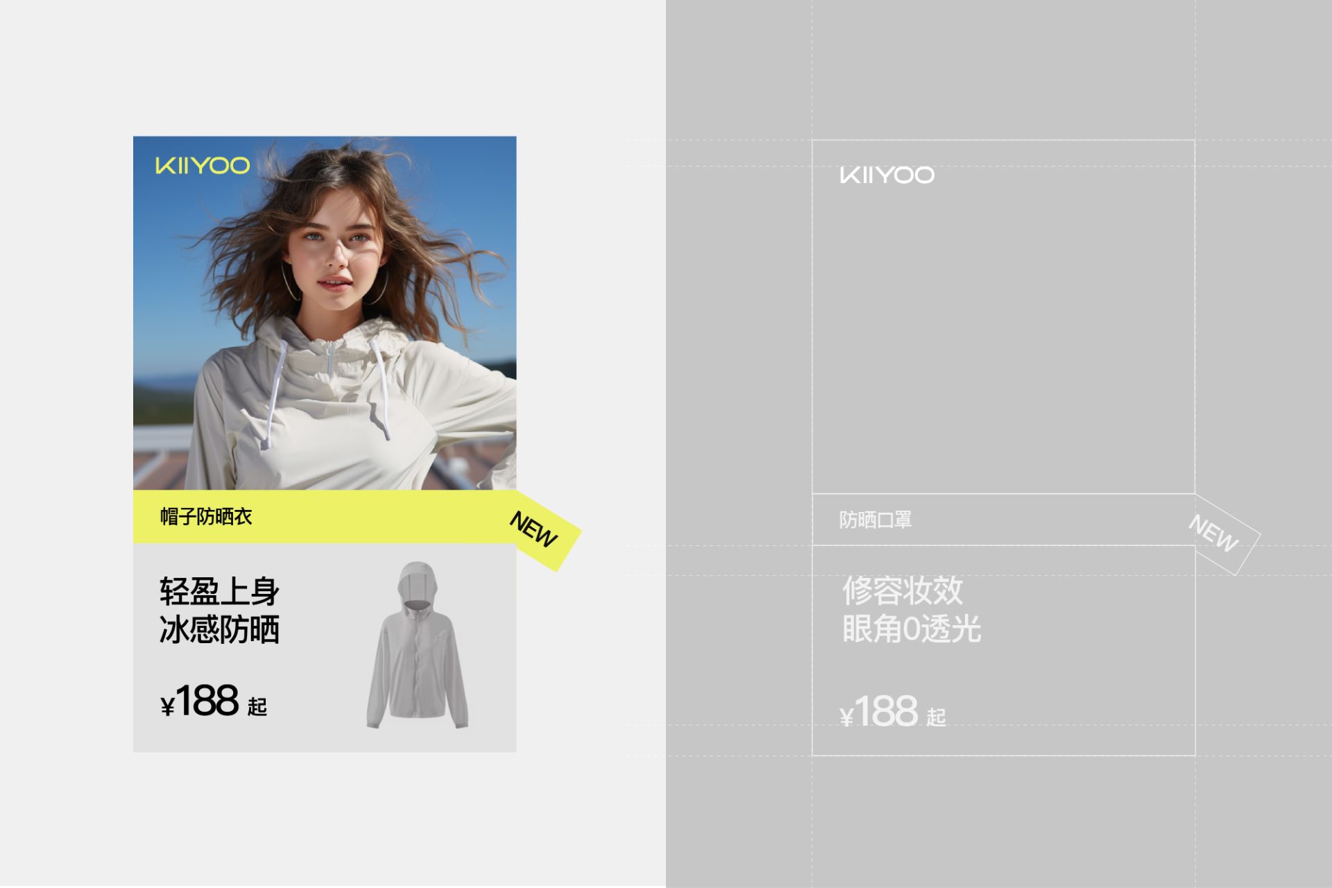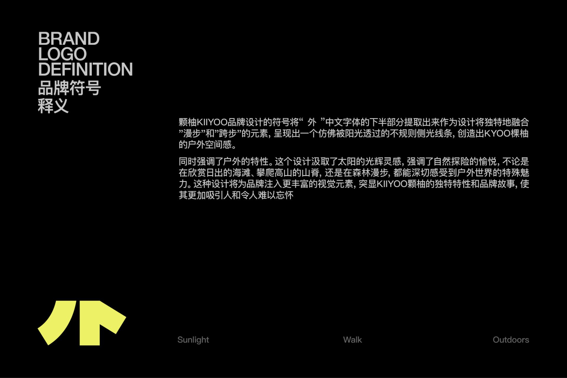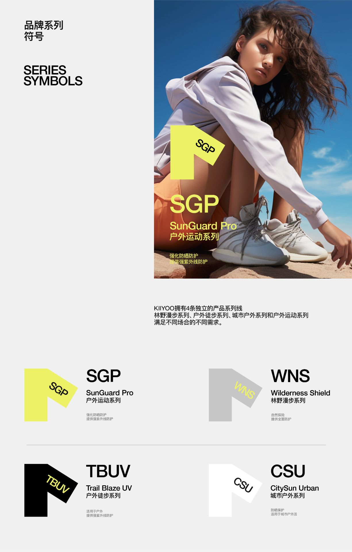 KIIYOO 颗柚是一家专注于户外防晒产品的品牌,旨在为户外爱好者提供出色的皮肤保护和舒适性。品牌名称取灵感于太阳的光辉,强调自然探险的乐趣,无论是沐浴日出的海滩、攀登高山的山脊还是徒步森林,都能享受到户外世界的独特魅力。 西九里根据品牌方诉求,构建品牌概念:漫步在自然,觅光跨山海,搭建整体VI视觉体系,并延展至四条独立的产品系列线,为其在视觉端建立极致差异化和创意触点。