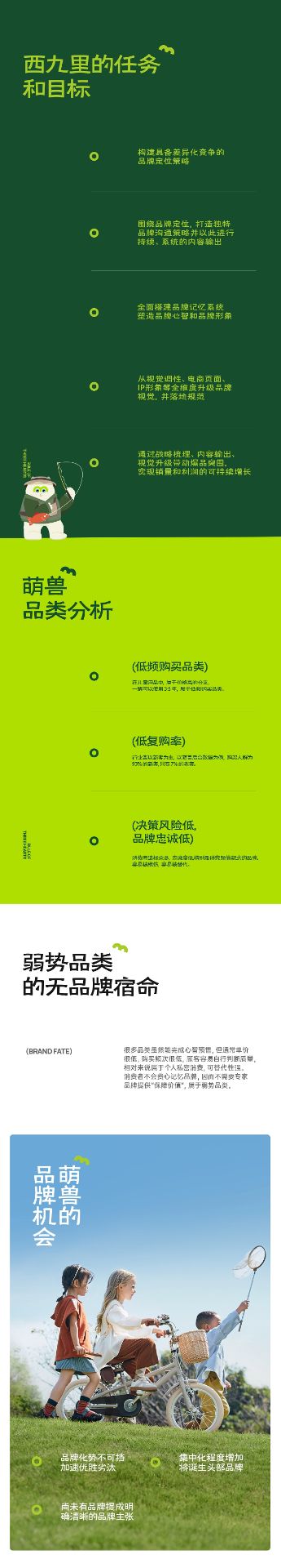 Montresor萌兽(原名-蒙特索尔)成立于2016年,主要产品涵盖童车、平衡车、滑板车等多个细分领域。走中高端童车路线,是萌兽转型初期就定下来的战略方向。为此,公司在设计、研发、宣传、销售等方面都下了不少功夫。和西九里合作前,萌兽心智壁垒未完全建立,因为款式颜值耐打,在市场赢得了一定口碑,社媒上关于品牌的讨论,多集中在颜值层面。但介于产品壁垒较低,外观容易被模仿,视觉端也缺少萌兽的专属性,容易被跟风、抄袭,这导致消费者较难建立对萌兽的直观好感。本次,西九里团队帮助品牌方聚焦细分赛道,构建品牌定位,并围绕定位打造品牌沟通策略,涵盖VI视觉体系、IP形象内容、爆品电商页面等维度。借此,帮助萌兽构建品牌护城河的壁垒。其中西九里升级的爆品Breeze系列,成为2022年双十一儿童自行车热卖榜第一。并且持续霸榜儿童自行车加购榜、热销榜、好评榜。